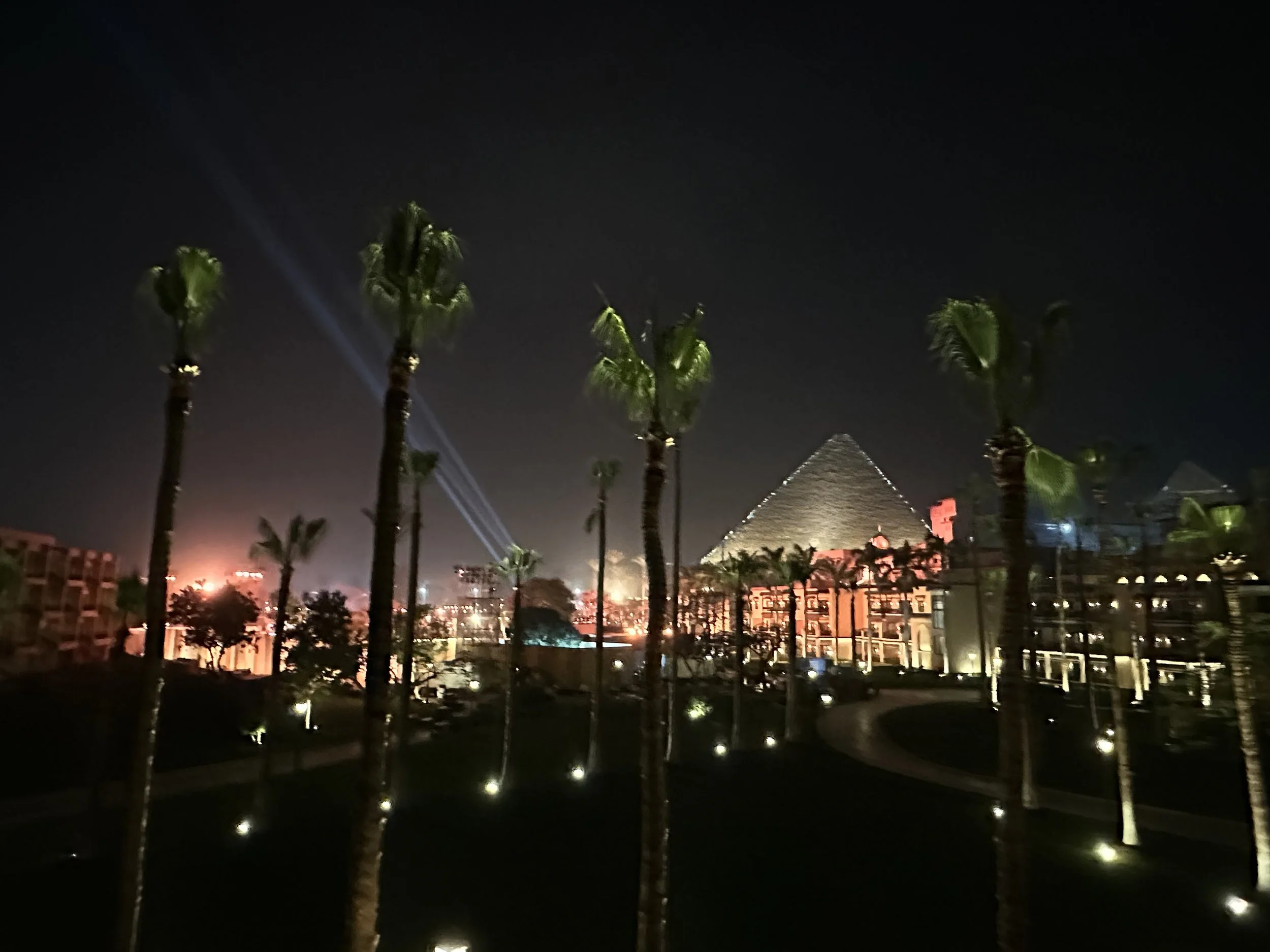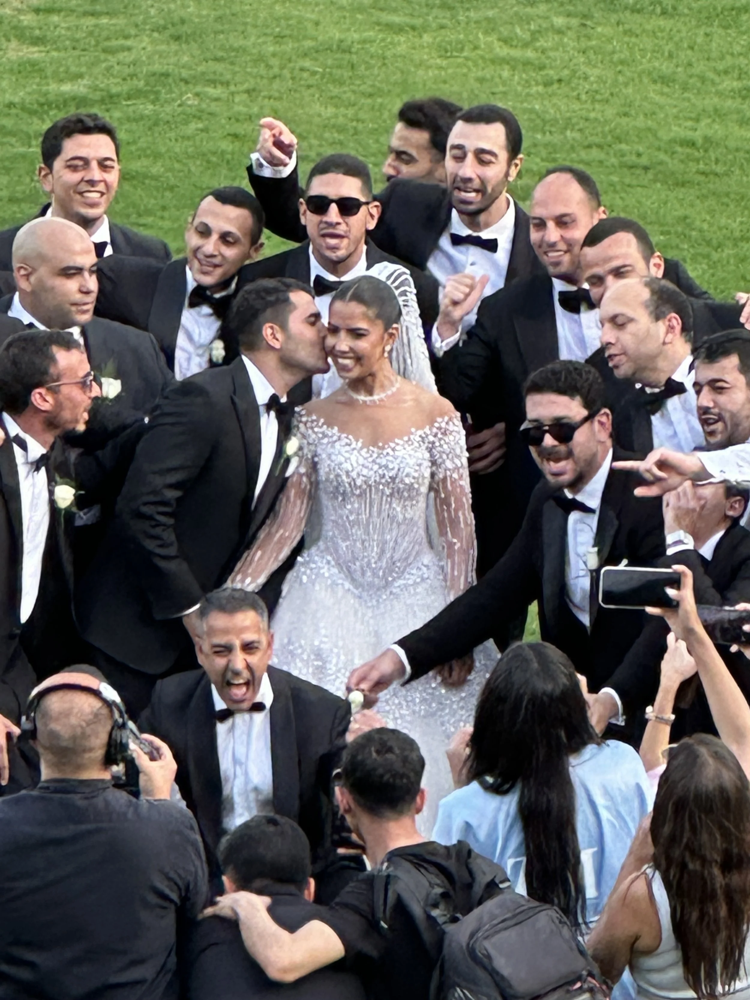 We stayed at the famous Mena House with stunning views of the nearby pyramids — a real treat! There was an incredible wedding last night, a lavish affair with constructed staging and giant fresh flower arrangements, 2700 guests at an estimated $2 million. The boisterous party loud rock/Egyptian music went until 2 am, our departure time 😵💫. We were oogling the bride and wedding party from our balcony. The bride’s gown is gorgeous, eh?