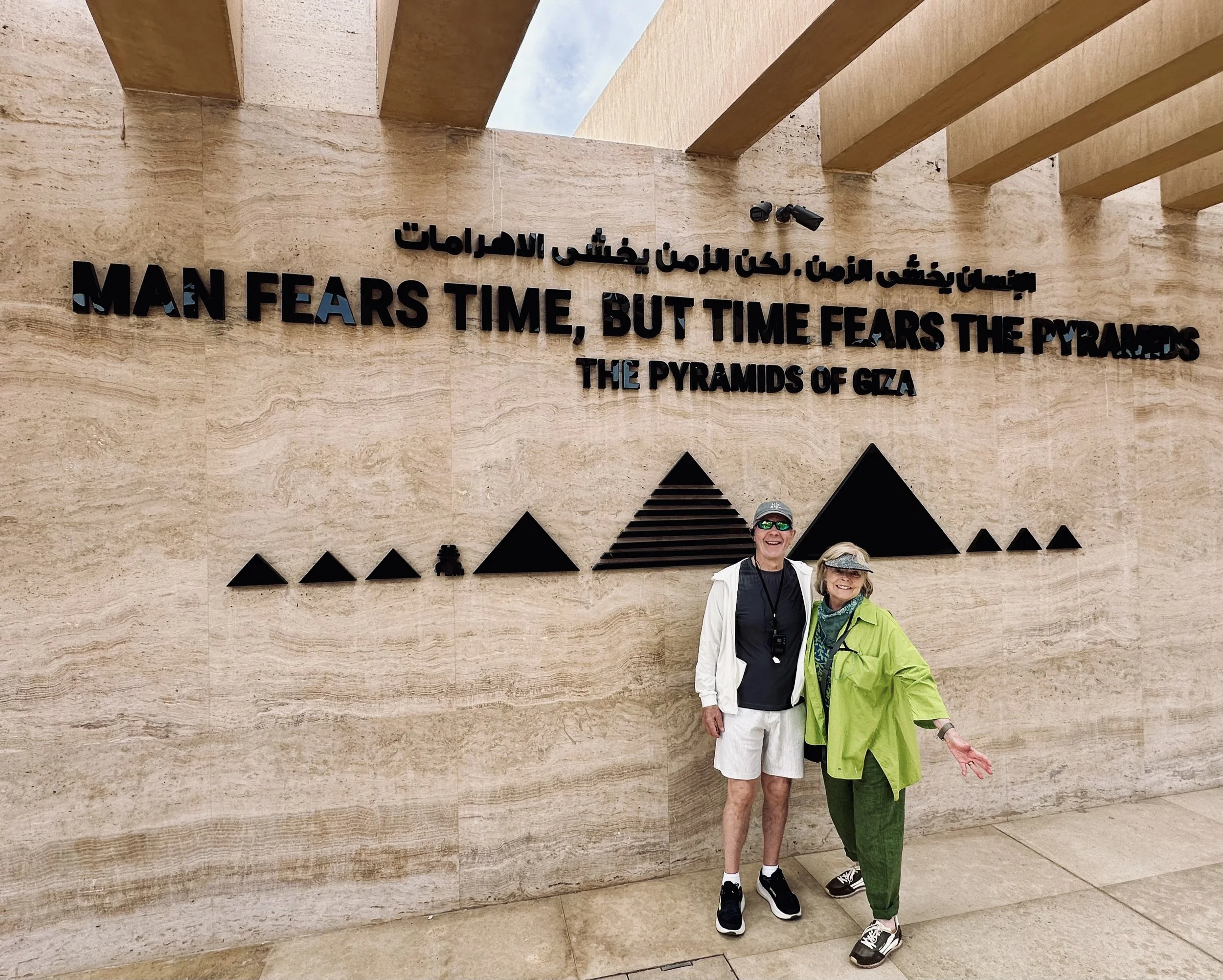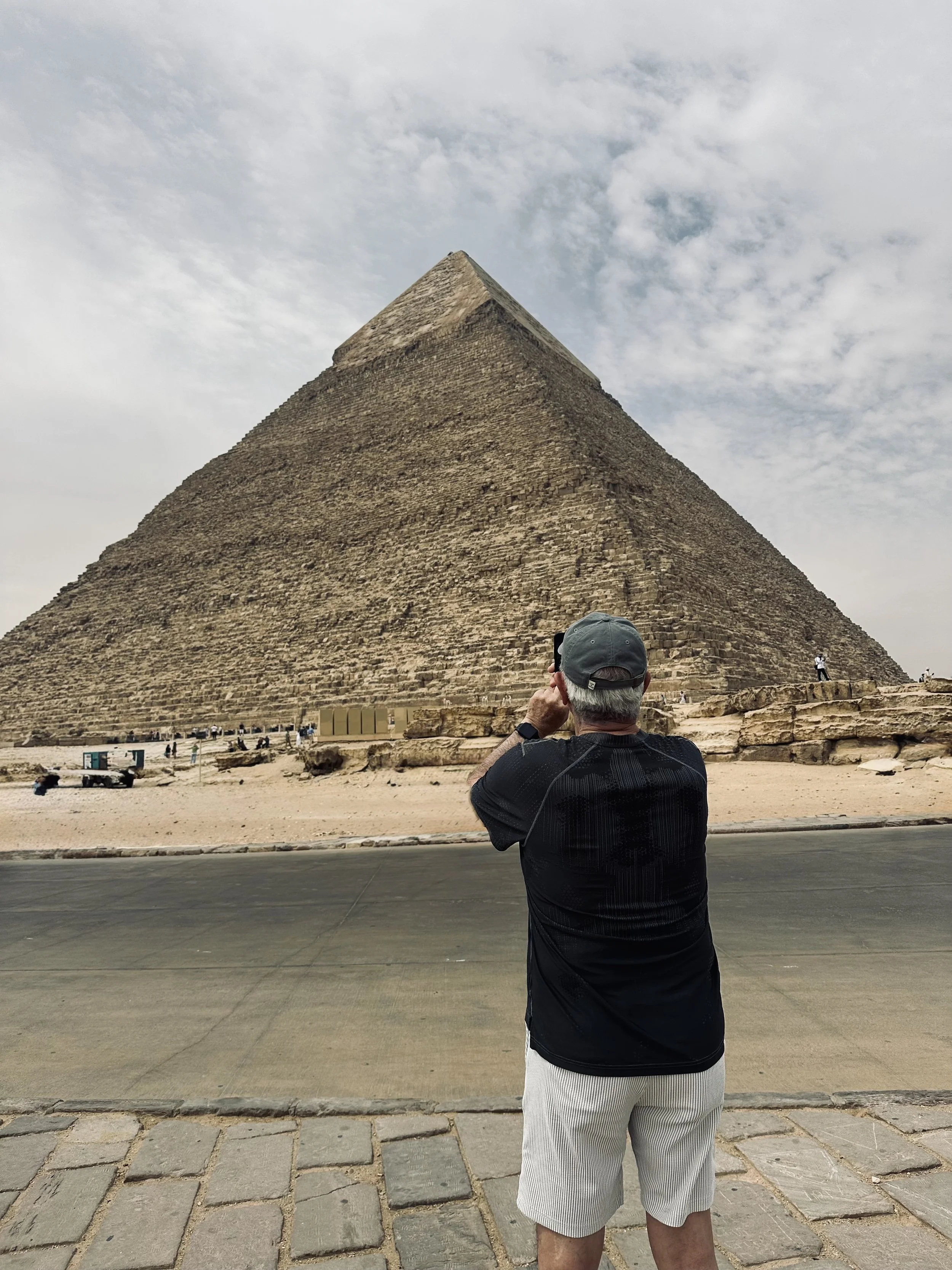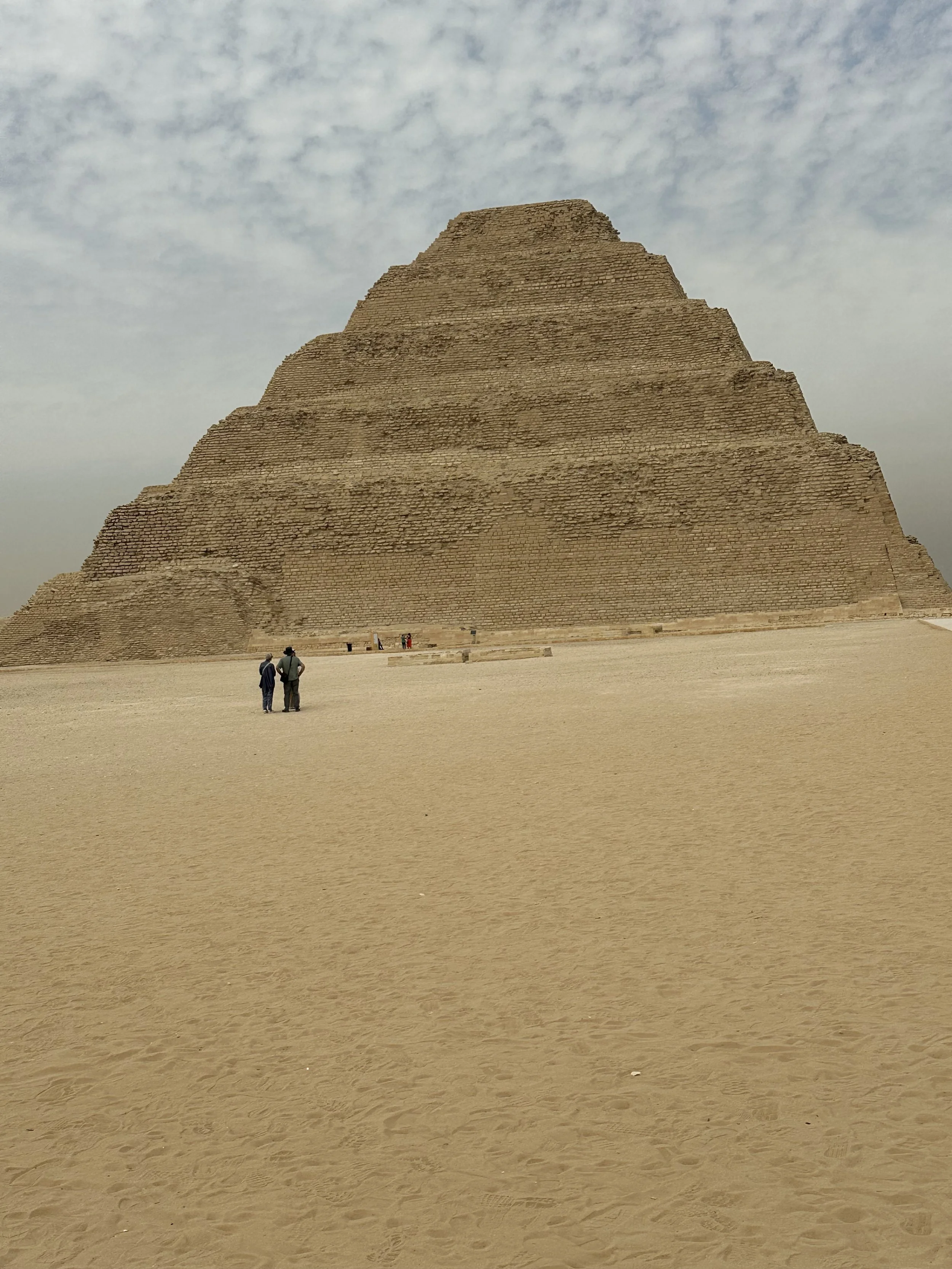 We tackled The Sphinx and the Great Pyramids of Giza today in a few hours, again visiting super early so we beat the crowds. We logged thousands of steps each day touring and I must admit the dust, dirt, sand and bone dry air took its toll on me, so I’ve had a lousy case of laryngitis/ cold. The Arab Spring means breathing problems for me! However, our guide adeptly arranged for us to stop at a pharmacy so I could load up on cold remedies, cough drops, anti-biotics, — a total of six items with English ingredients and instructions was about $10. At home it would have been ten times that!